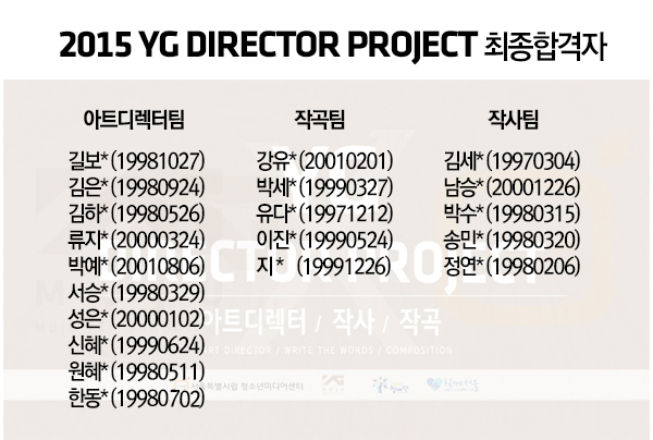 2015 YG 디렉터 프로젝트 최종합격자 발표