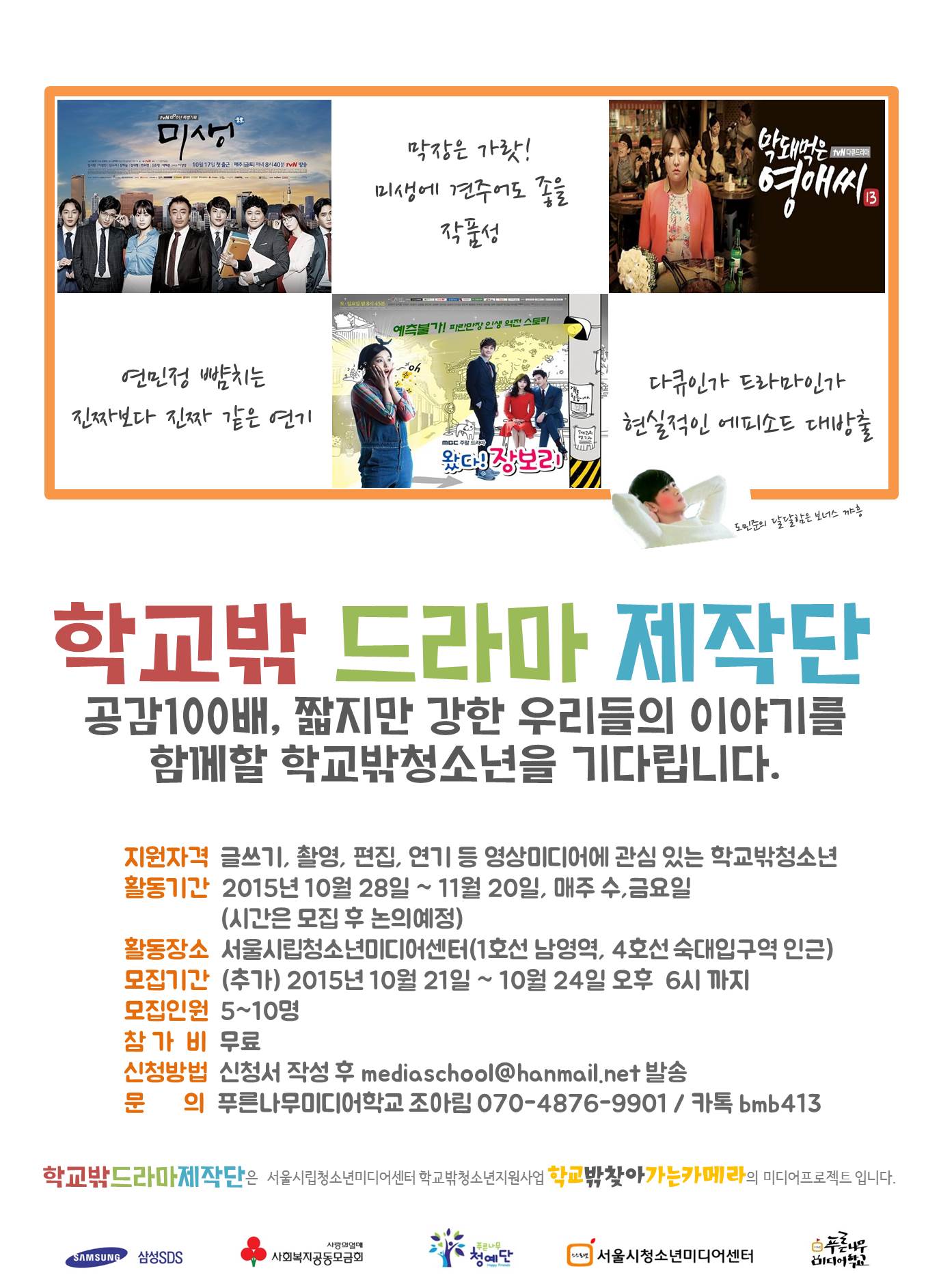 학교밖청소년들이 직접 만드는 학교밖드라마제작단원을 모집합니다.(추가)