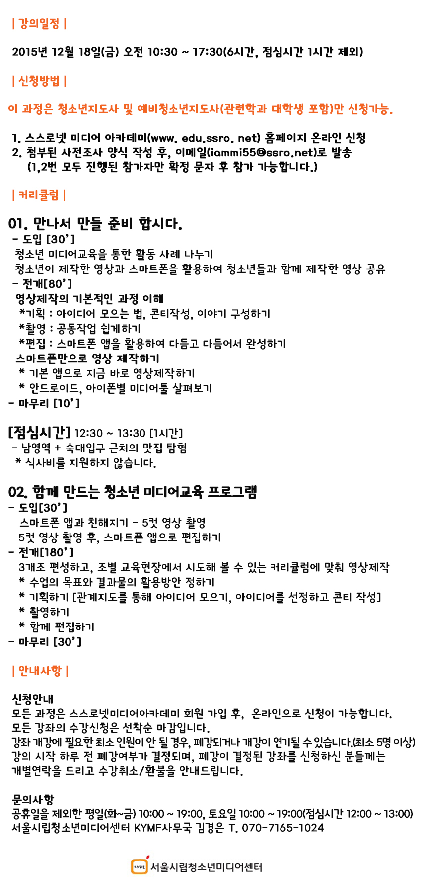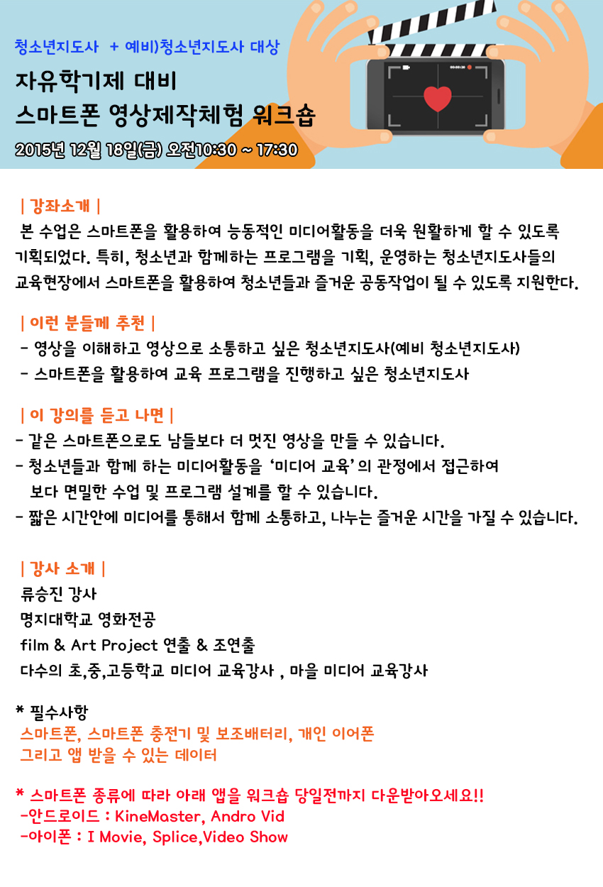 성인대상] 자유학기제 대비 스마트폰 영상제작체험 워크샵 참가자 모집(사전조사양식)