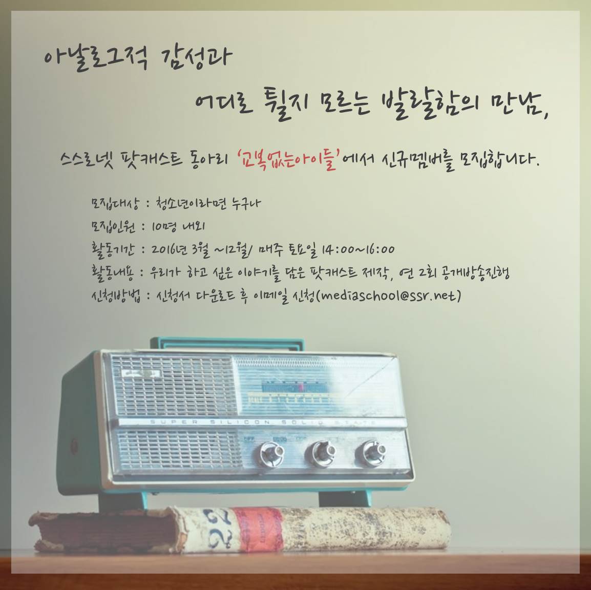 스스로넷 팟캐스트 동아리 '교복없는아이들' 신규멤버를 모집합니다.