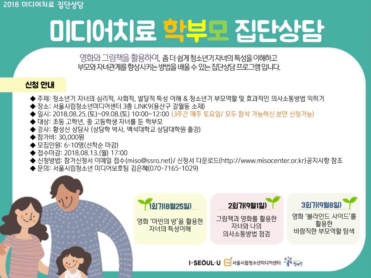 미디어치료 학부모 집단상담 - 청소년 자녀의 특성 이해 / 부모-자녀관계 향상 집단상담