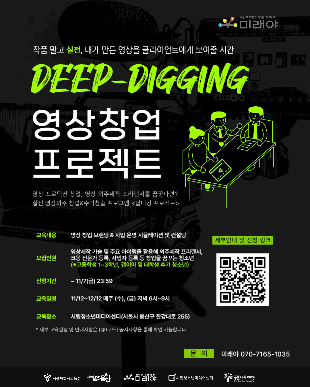 [미래야] 2025년 <딥디깅 프로젝트> 영상 외주 프리랜서&창업을 꿈꾸는 청소년(중3~대학생) 청소년 모여라! ※추가모집(~11/7)