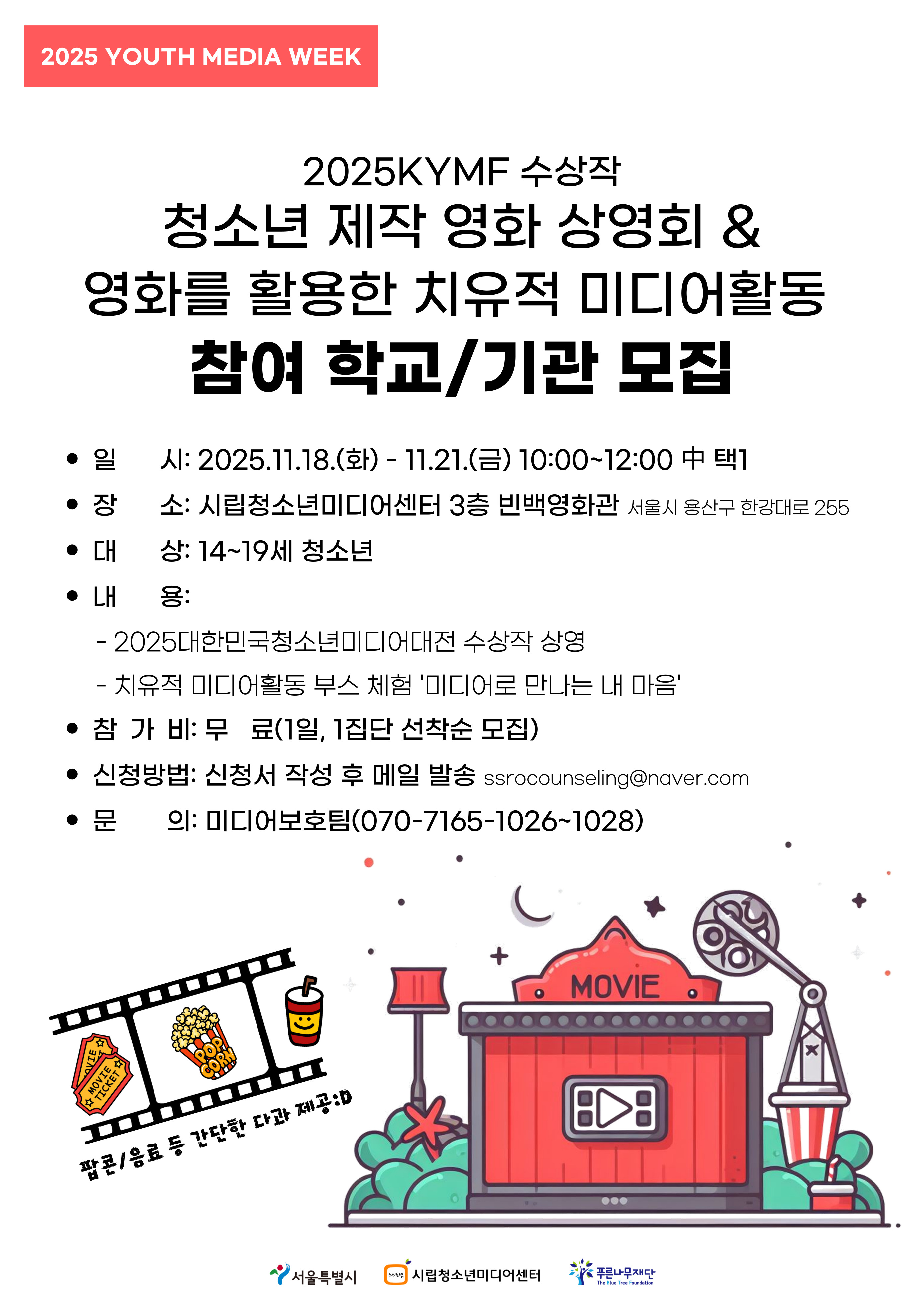 - 내용: 1) 2025 대한민국청소년미디어대전 수상작 상영