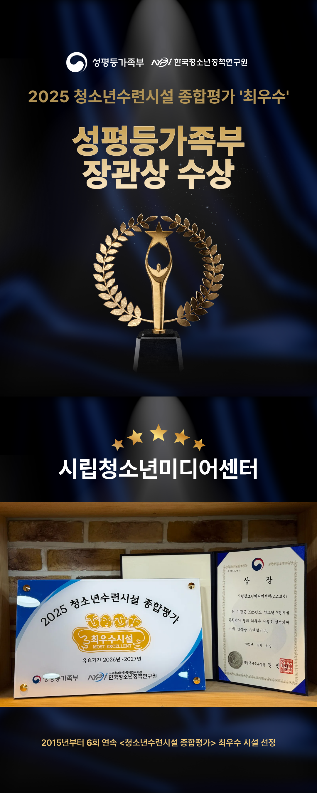 2025 청소년수련시설 종합평가 <최우수> 시설 & 성평등가족부장관상 수상
