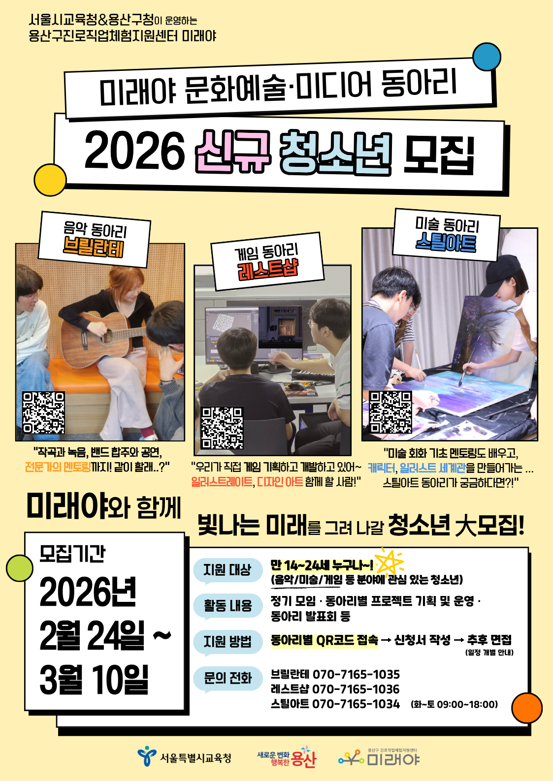 [모집] 2026 미래야 문화예술 · 미디어 동아리 신규 청소년 모집