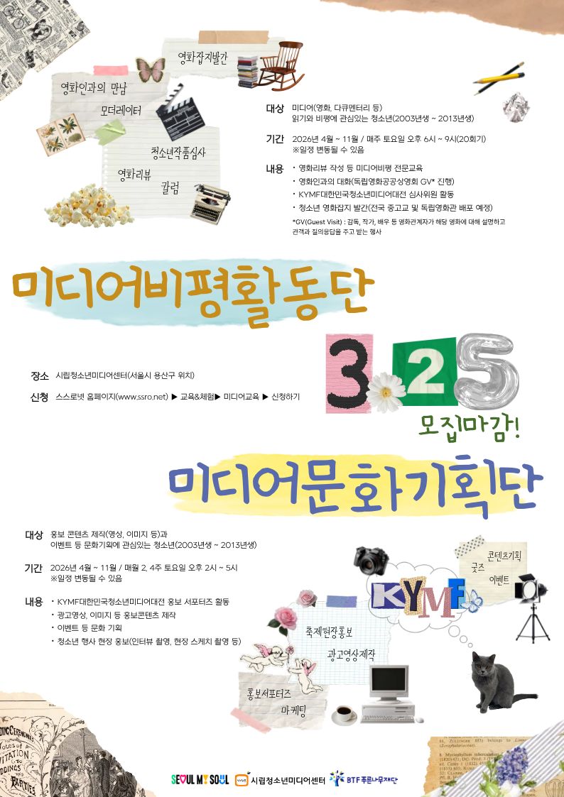2026 청소년미디어 <문화기획단>, <비평활동단> 모집 (~3/25)