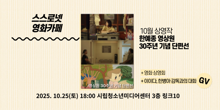2000년부터 이어져 25년째 활발히 활동중인 청소년 영화 모임 "아그로" 한국을 넘어, 세계의 새로운 영화 사조를 이끌어 나가겠다는 일념 아래 앞으로의 영화산업을 견인해갈 젊은 영화인들이 모여 정치, 종교, 이념 등에 구애 받지 않는 개인의 독창적인 예술을 한다. 아그로의 모두는 각자가 작가이자, 감독이며, 새 시대를 대표할 예술인이다. ▶ 신청 문의: lih@ssro.net